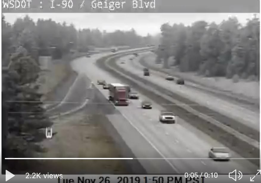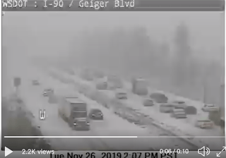 The onset of snow was very rapid. Compare the WSDOT I-90 cam shot at Geiger Blvd at 1:50 PM Tuesday, with 2:07 PM. Quite dramatic.