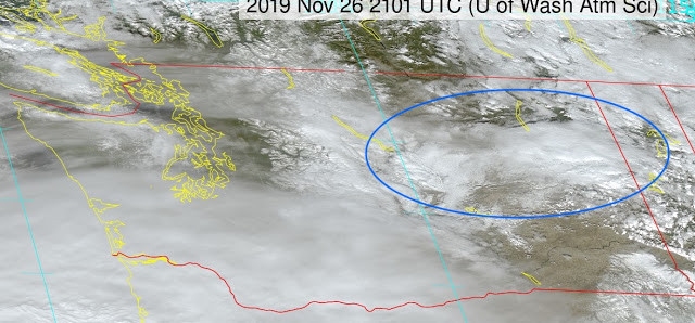 Yesterday around 2 PM, a band of light snow passed over I-90 just southwest of Spokane. The result was bedlam, with over ONE HUNDRED cars being involved in dozens of multi-car accidents (see picture).