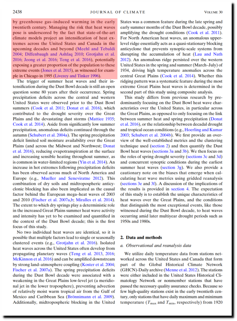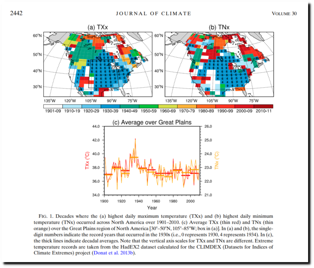 The paper claims that the heat covered almost one-third of the US, and began around 1930. But their maps and graph show that the heat covered a much larger region, and that summers were hotter from 1910 until 1955.