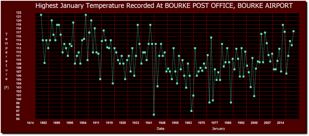 A Stevenson screen was not installed in Bourke until August 1908, meaning temperature readings from before that could be inflated by as much as 2C.