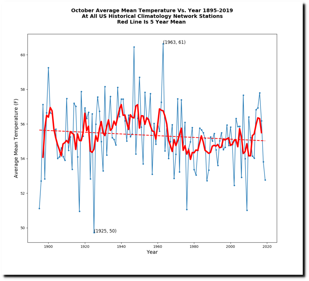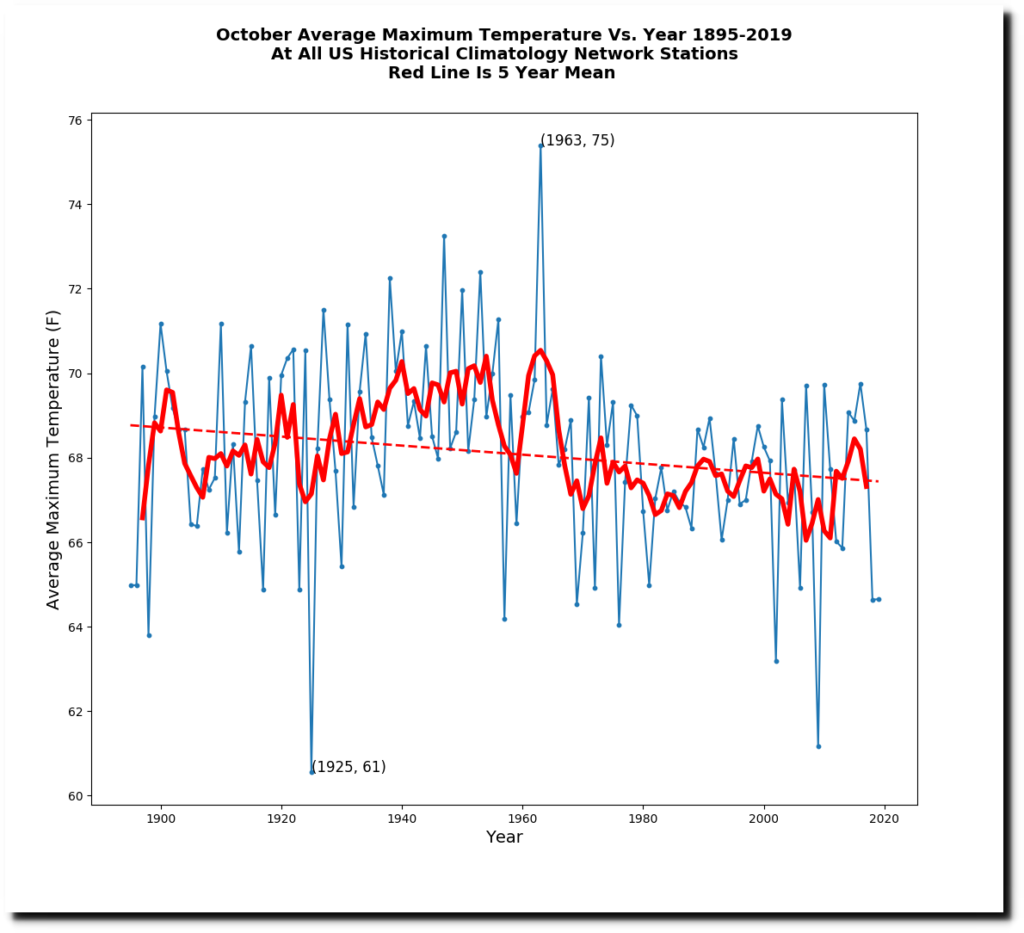 October temperatures in the US have been declining for over a century, with a sharp drop during the 1960s.