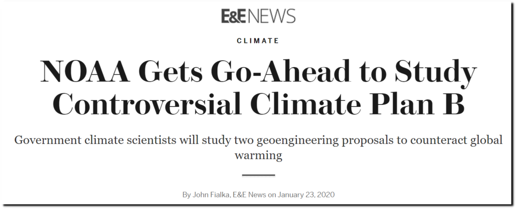 Congress has given NOAA money to study ways to pollute the atmosphere in order to stop “global warming”