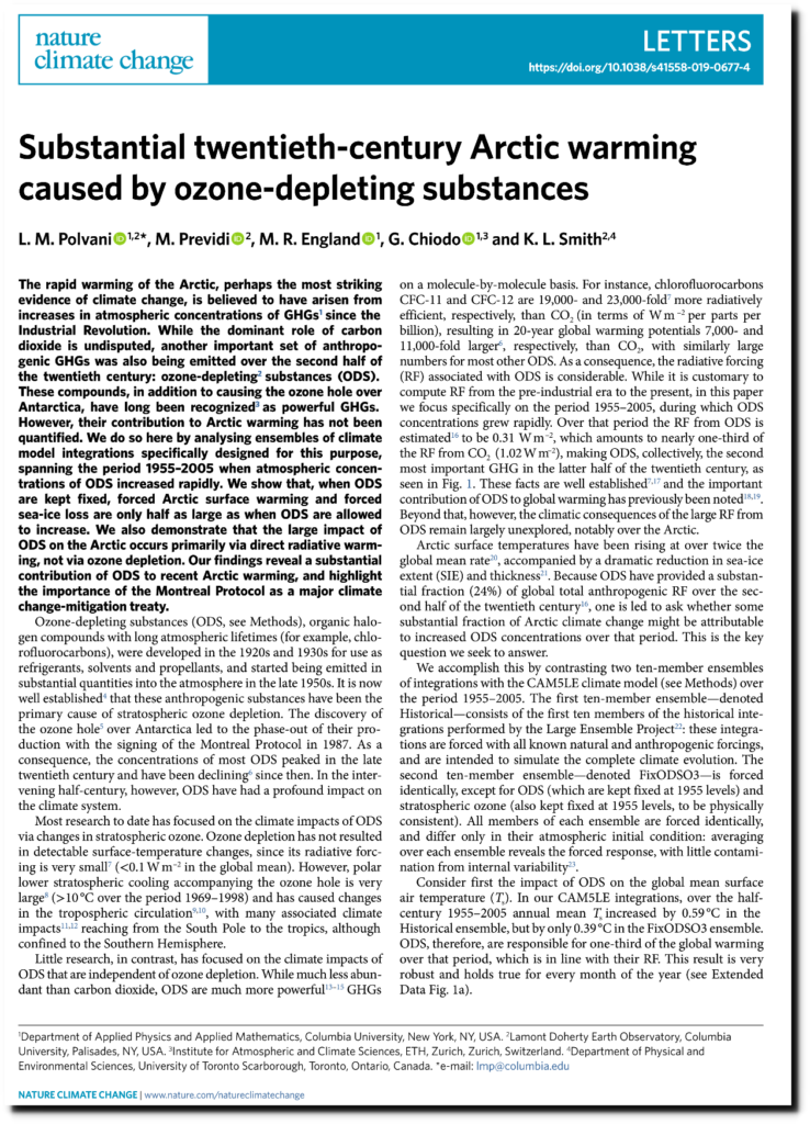 A new study claims that CFC’s not only destroyed the Ozone layer, but they also overheated the Arctic.