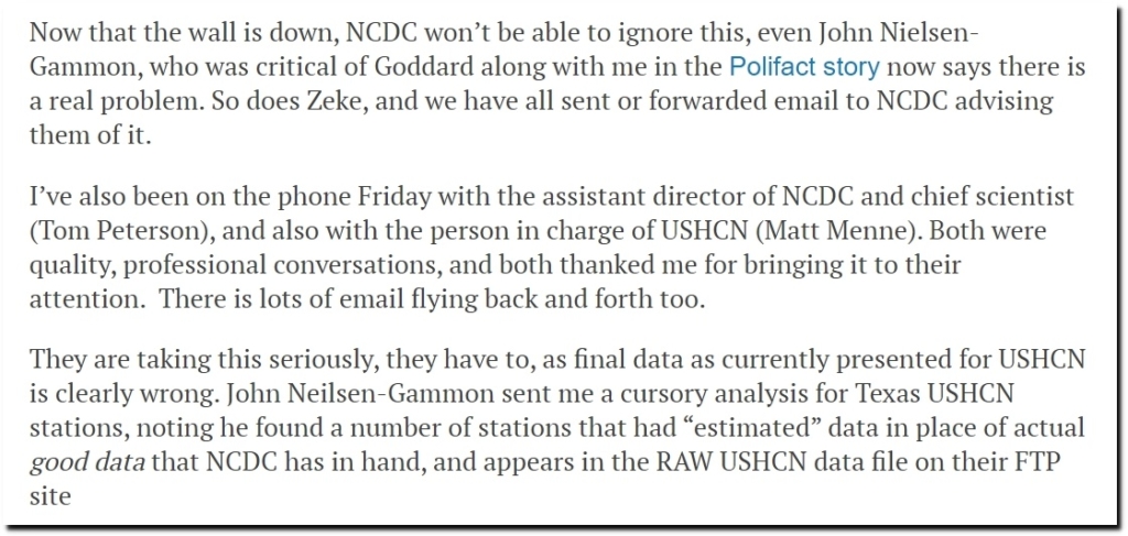 Zeke Hausfather explained why they tamper with the data, and said that I made “major errors” by not tampering with the data like he does.