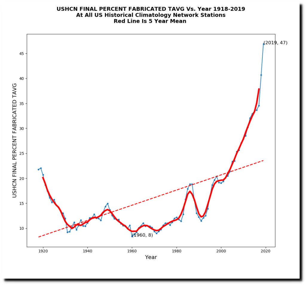 The real story is that NOAA is simply making data up. Almost half of it is now fake.