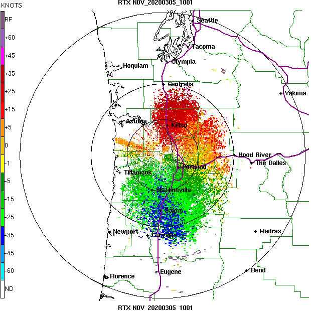 National Weather Service radars have Doppler capabilities, which means they can determine the speed of the target towards or away from the radar. Let’s check out the velocities of the birdies (see below). Blue/green means approaching and red/orange means moving away.