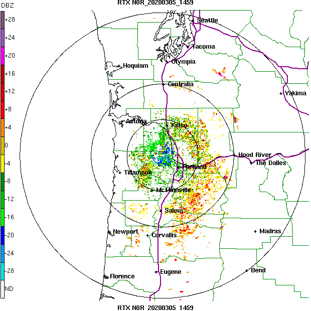 The Hoquiam (Langley Hill) radar showed the birds as well– here are the radar returns (called reflectivity) at 9:32 PM Wednesday night. The light blue are birds. They are not going very far offshore.