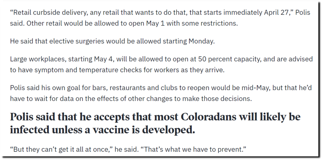 Without actually saying it, Democratic Colorado governor Polis has opted for herd immunity, demonstrating that even a few Democrats recognize that Trump’s approach is correct.