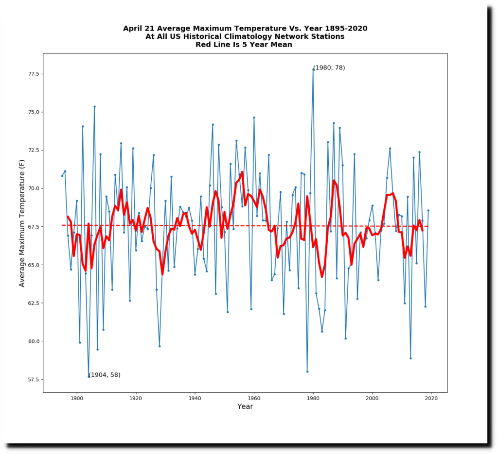 The average temperature across the US that day was 78 degrees, about twelve degrees above average.