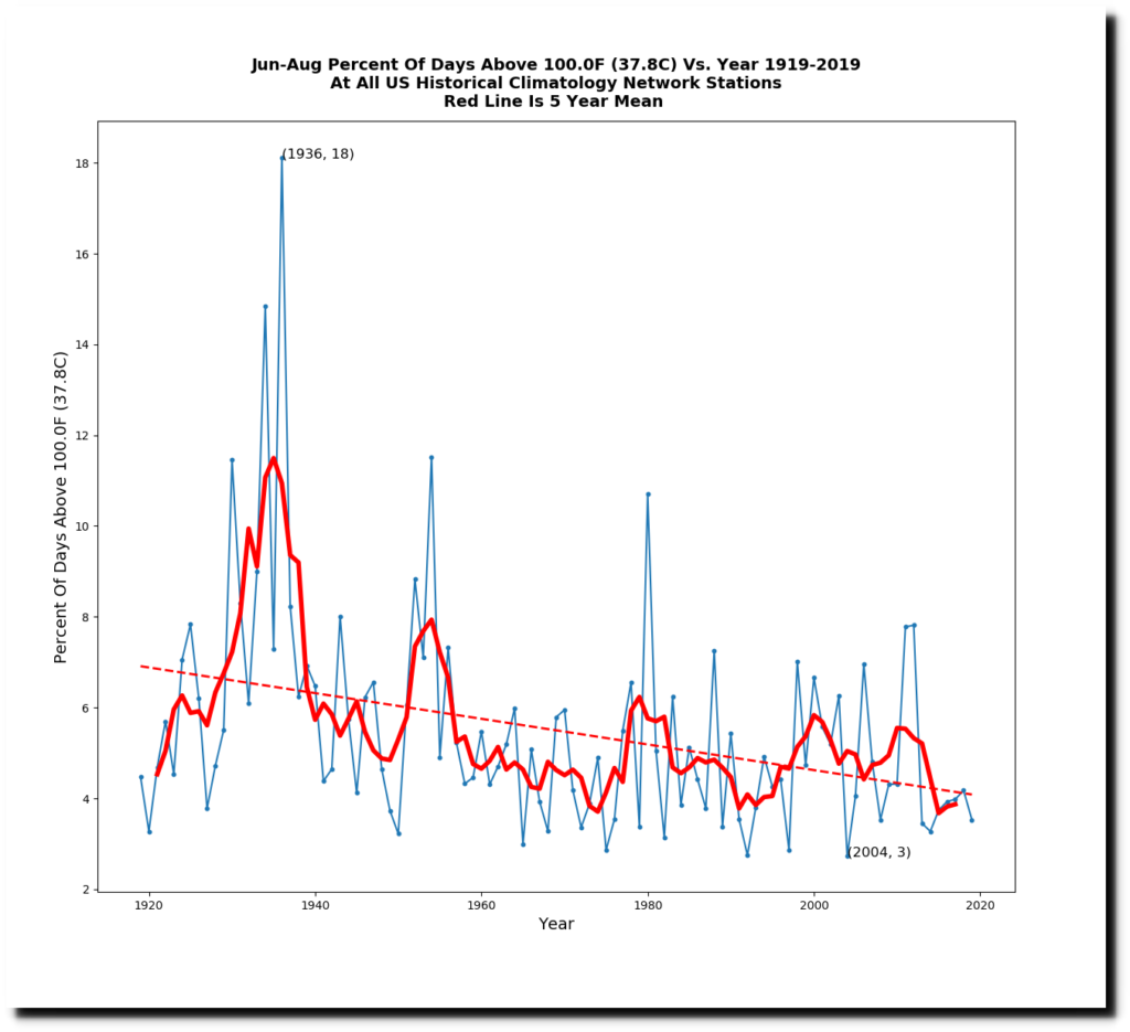 The following summer of 1980 was one of the hottest on record in the US, with more than 10% of days over 100 degrees. Based on that metric, it was the last extremely hot summer across the entire country.