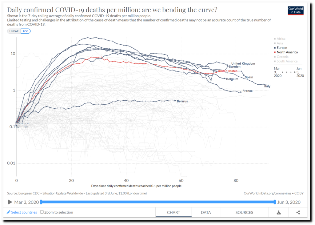 Daily confirmed COVID-19 deaths per million: are we bending the curve?