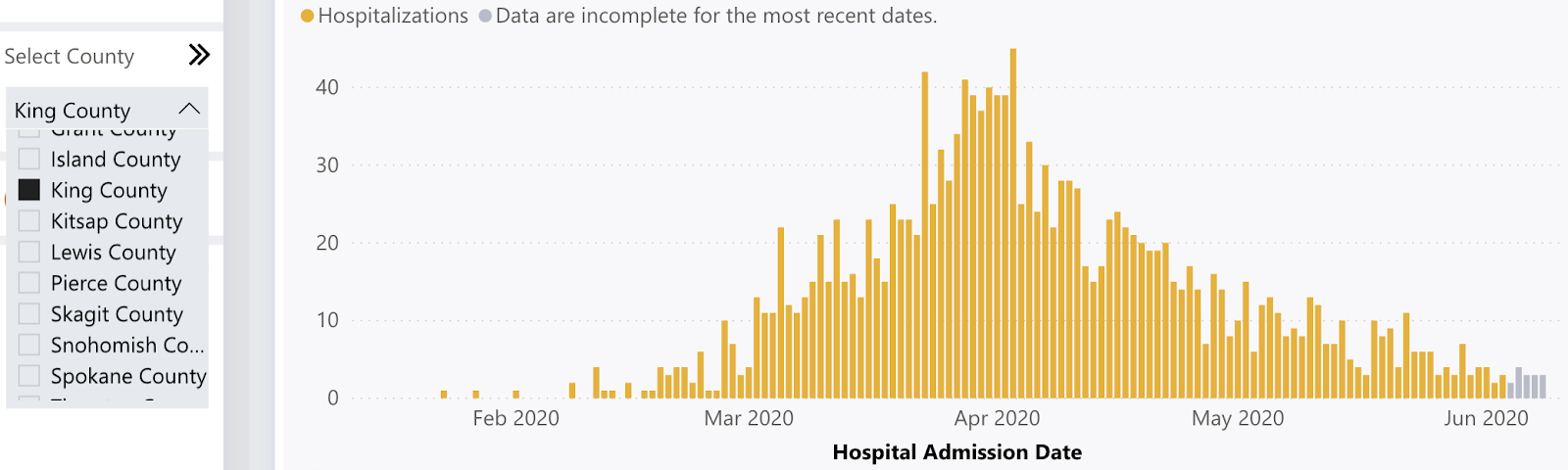 King County, the center of the protests, has shown no peak in hospitalizations.