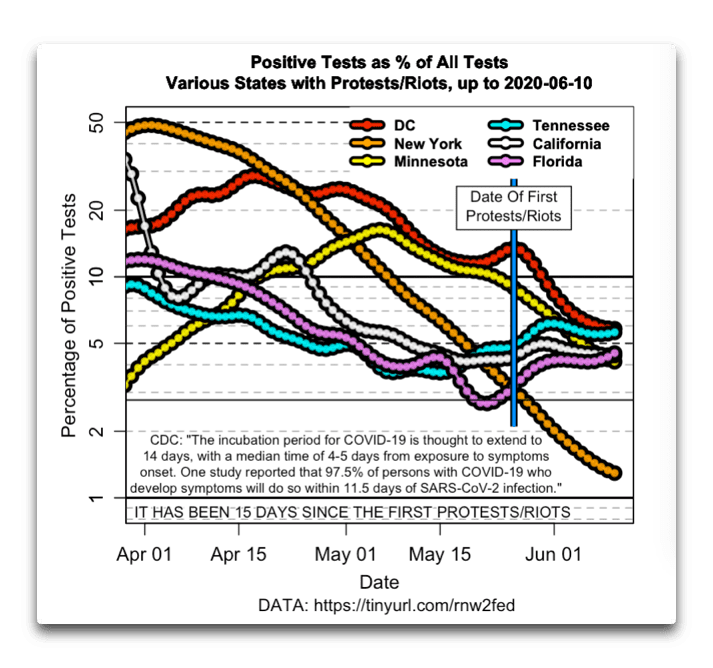 But now, there is even more compelling and powerful evidence of the lack of COVID threat in outside air, even in a worse-case situation: the lack of surge in COVID cases following the large protests in Seattle and other cities.