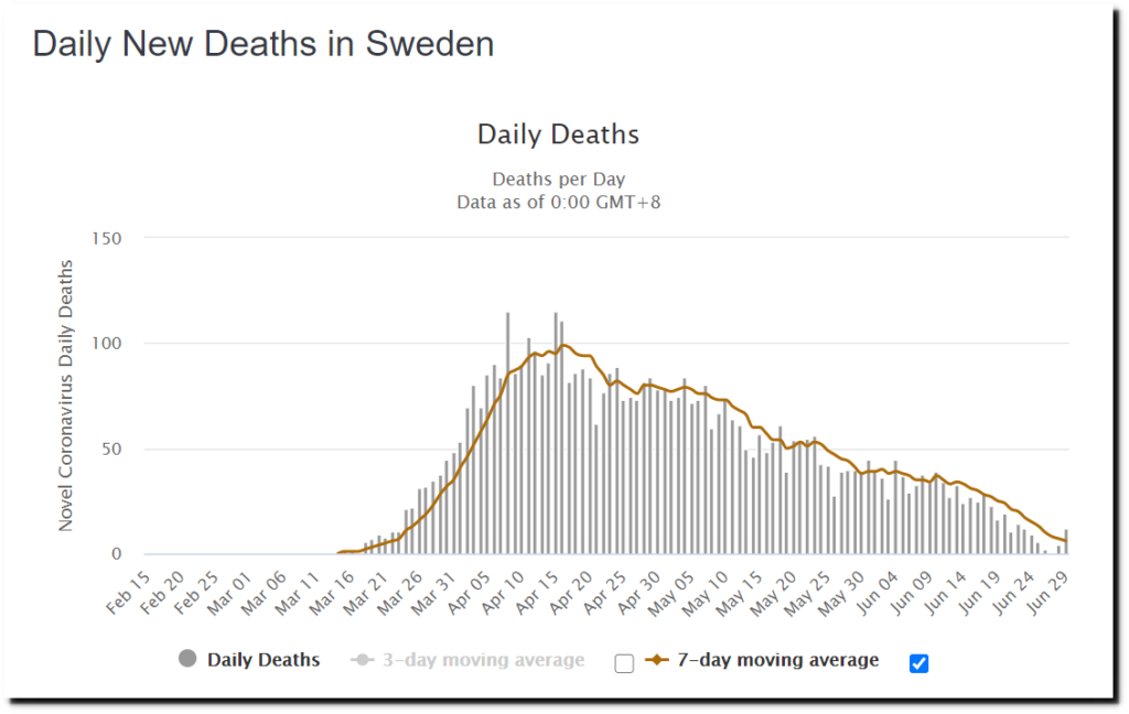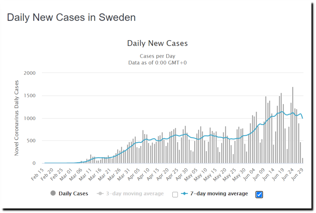 Over the past ten weeks, the number of daily reported COVID-19 cases in Sweden has more than doubled, yet the number of deaths has plummeted.