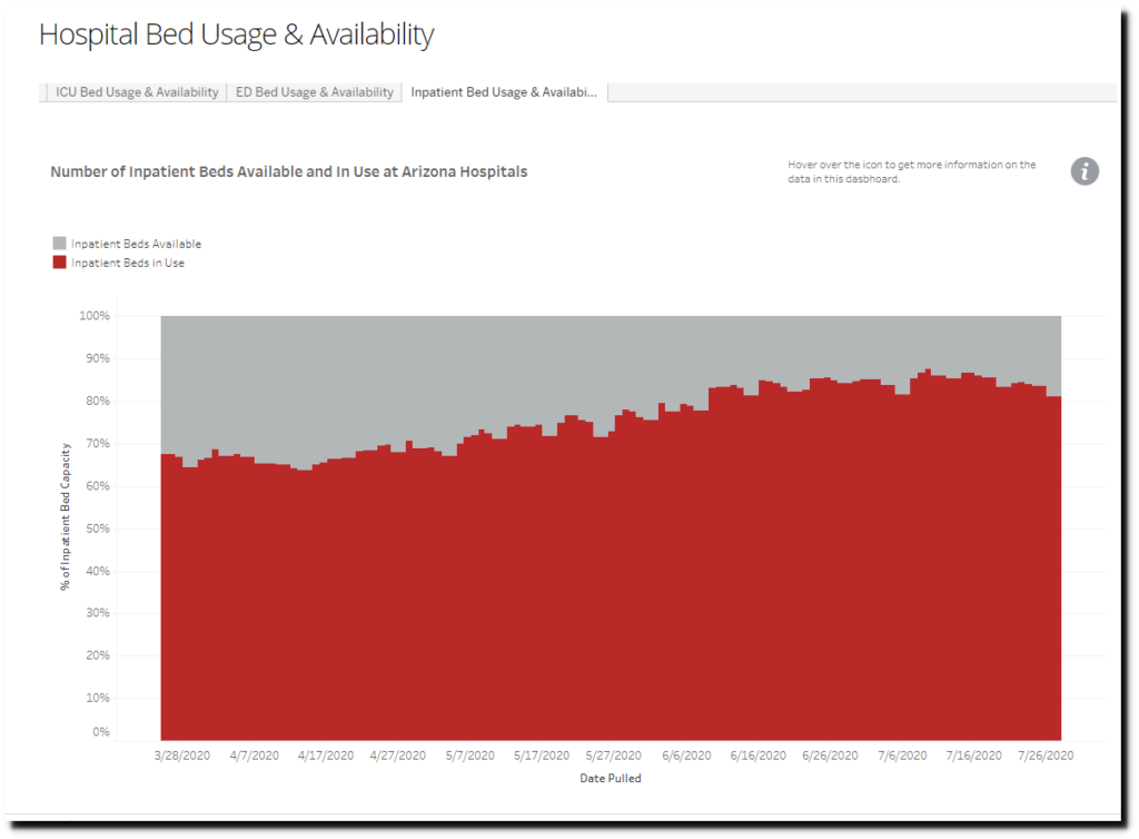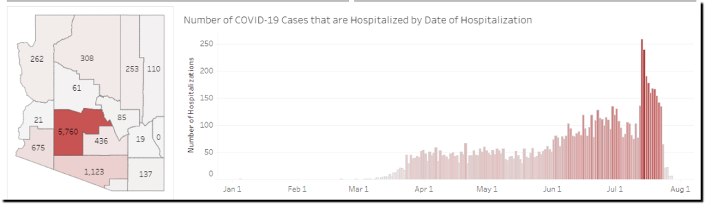 Arizona shows a huge spike in the number of hospitalized patients on July 13.