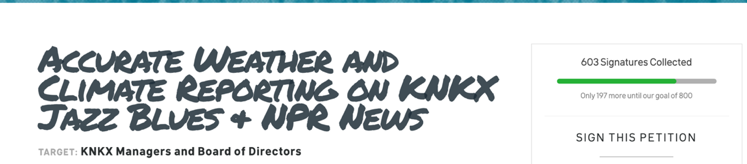 Well, all this came to a head this year, when Seattle350.org put out a petition with the aim of getting me removed from KNKX (see below).