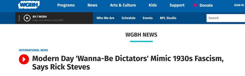 The great irony here and the sign of total hypocrisy on the part of KNKX management is that NPR is constantly providing folks a platform to call Trump, police, or Republicans fascists, Nazis or brownshirts. You want proof? Here is an NPR story in which Rick Steves calls Trump a fascist.