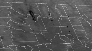 We can view the multiple fires on the latest short-wave infrared imagery–with fires indicated by black (warm) dots (below). Wow…. I count 5-10 new fires compared to this morning (the big area in the northwest section started overnight and was talked about in an earlier blog).