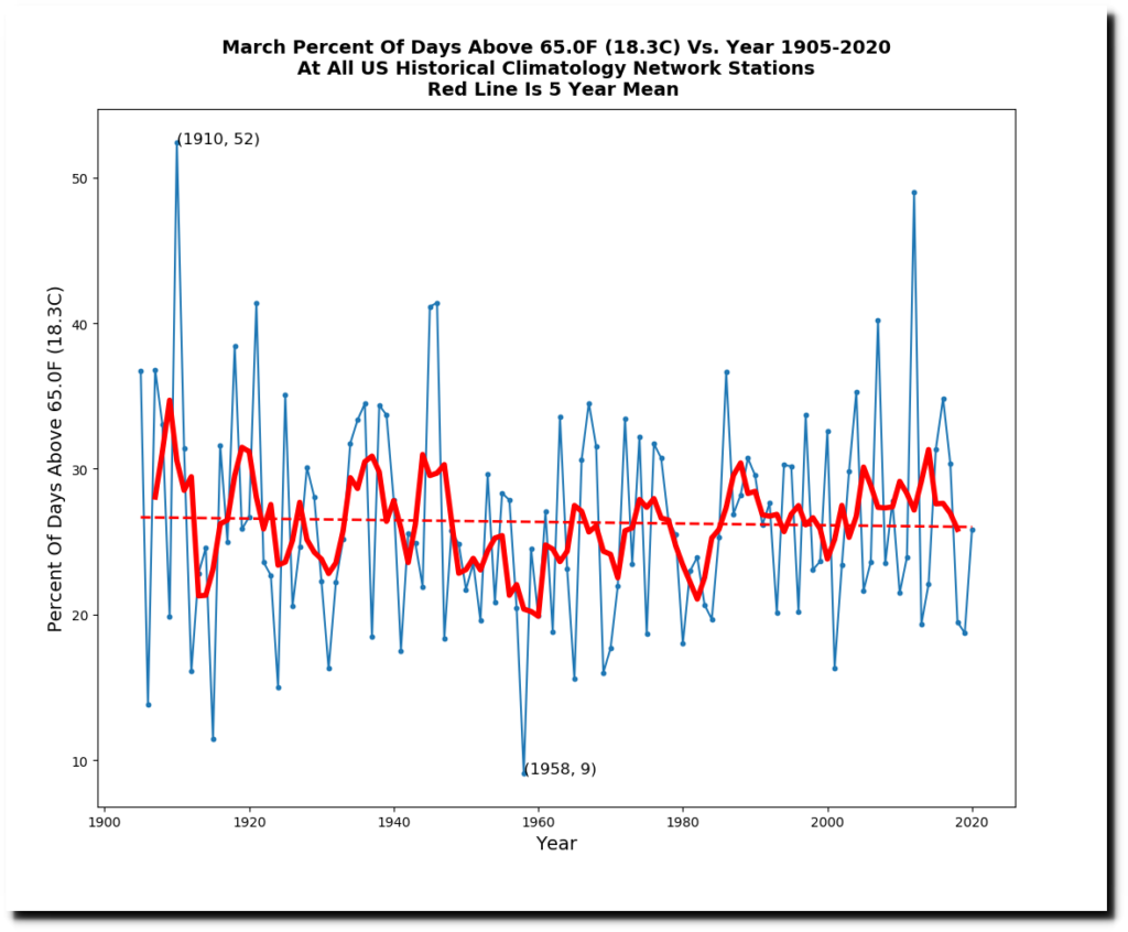 March of 1910 was the warmest on record in the US and the snow melted very early, which led to the massive fires later in the year.
