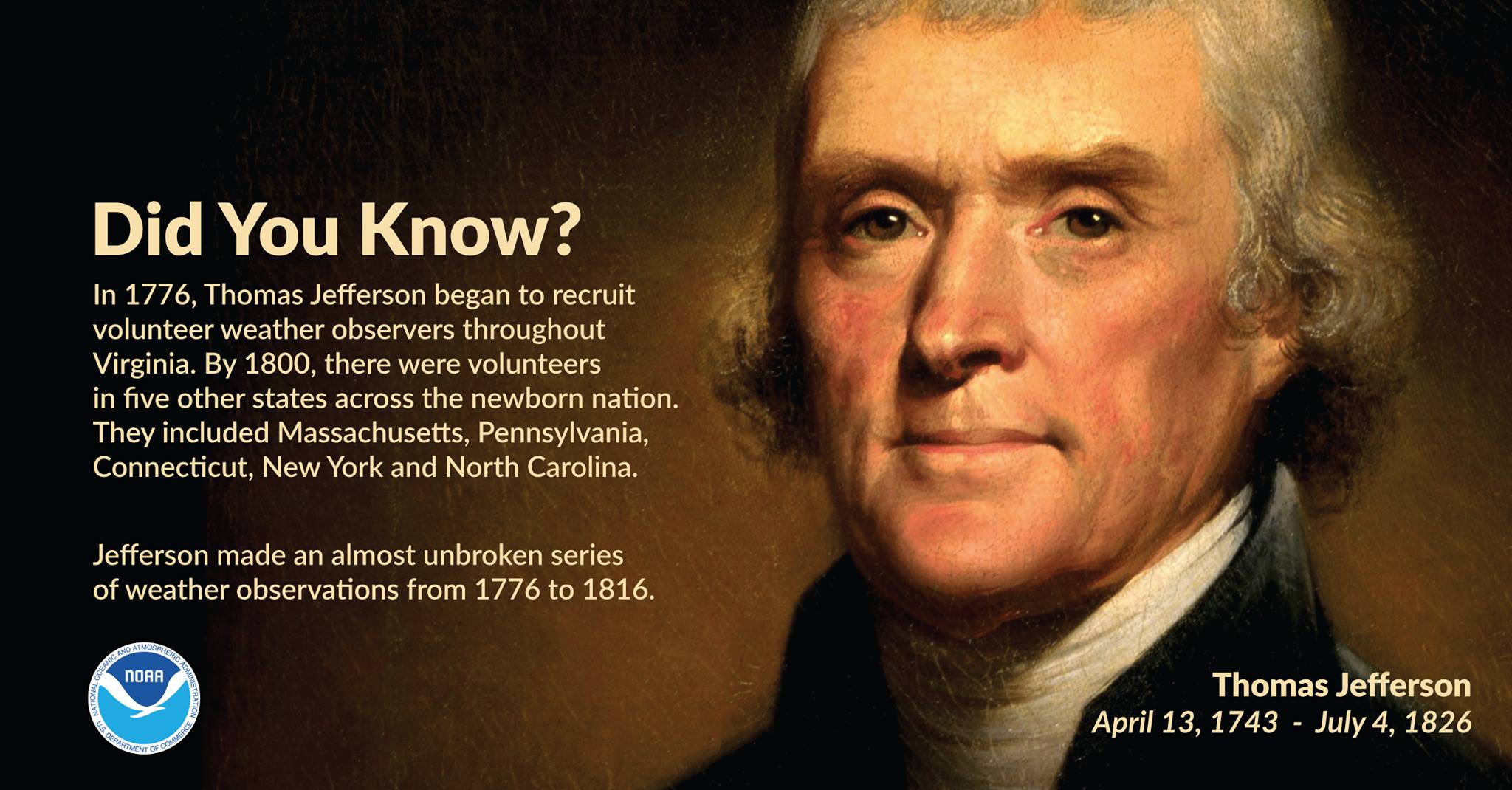 Jefferson also wanted to study weather to improve forecasting complaining in 1822 that: