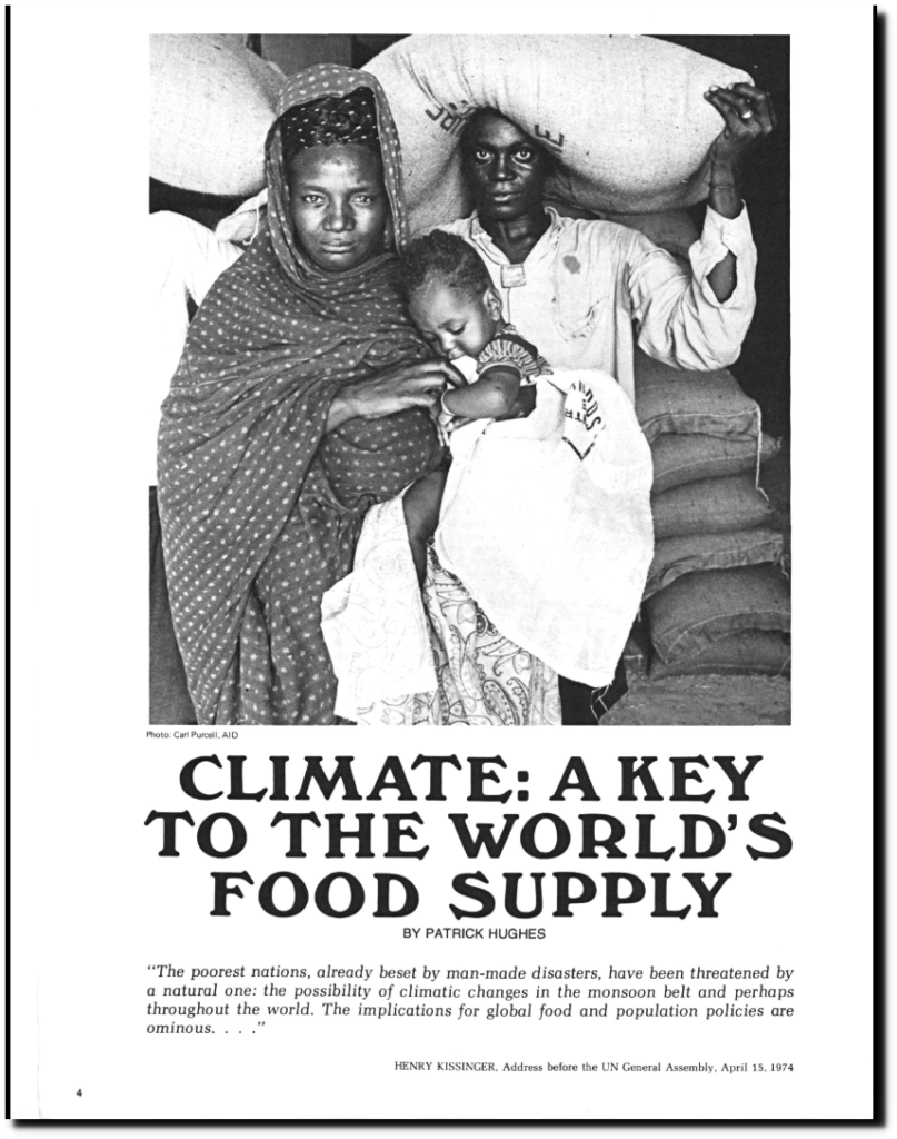 Most forecasts of worldwide food production have been based on the assumption that global weather will stay “Many climatologists have associated this drought and other recent weather anomalies with a global cooling trend and changes in atmospheric circulation which, if prolonged, pose serious threats to major food-producing regions of the world”