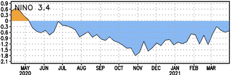 But there is major news on the La Nina front. La Nina is now collapsing and should be history in a few months.