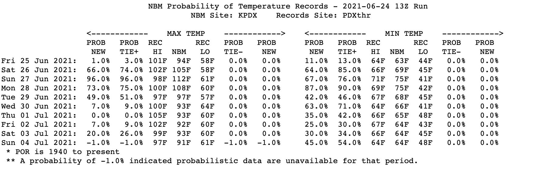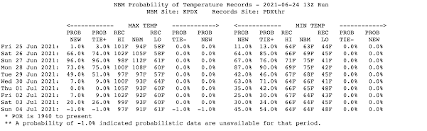 And at Portland: 101F on Friday, 105F on Saturday, 112 on Sunday, and 108F on Monday.