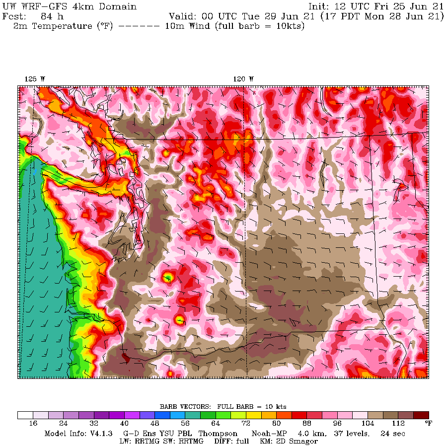 Surface temperatures will get above 112F over and near the western slopes of the Cascades. Large portions of western Oregon and Washington away from the water will be above 104F.