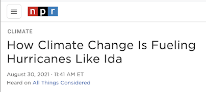 A competent journalist doing a story on the relationship of global warming and Hurricane Ida would quickly have learned that: