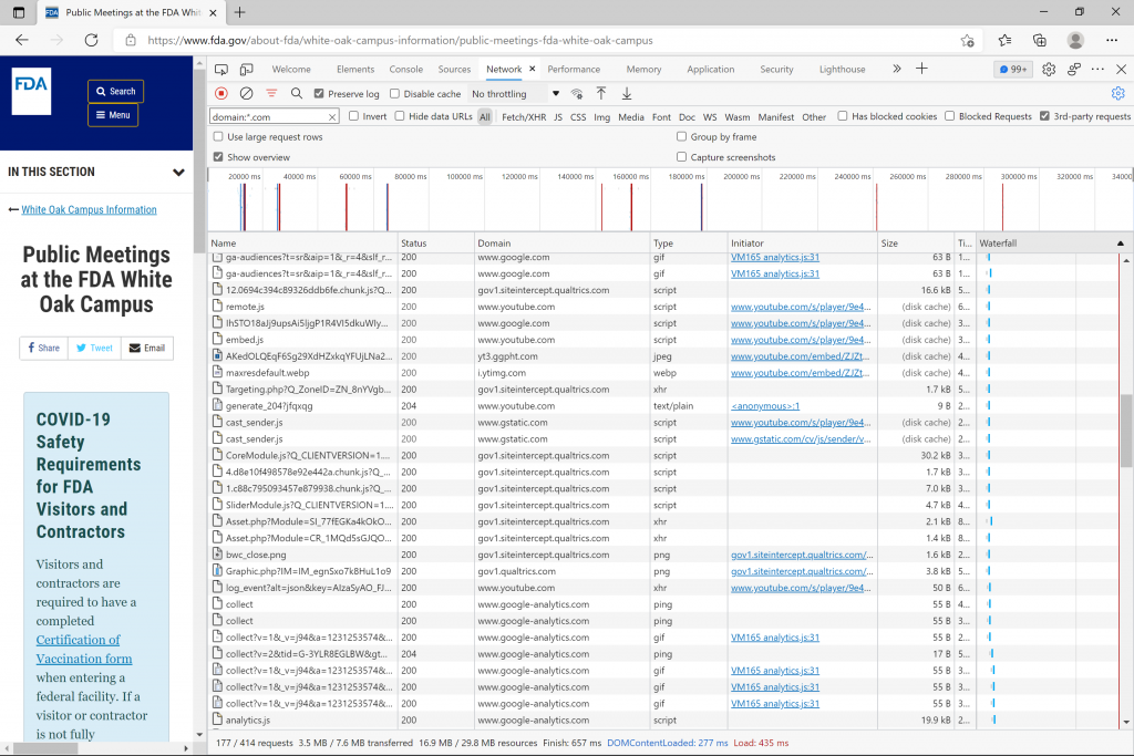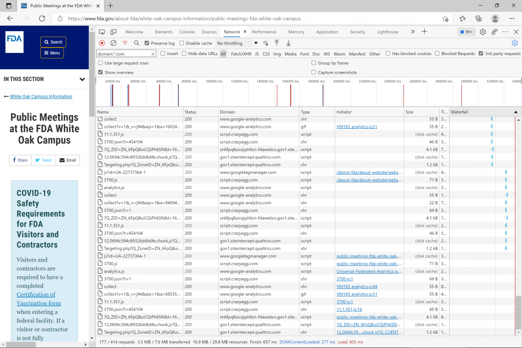 Calls to 3rd party domains after about a dozen clicks on HHS.gov, FDA.gov, and CDC.gov. Domains ending with .com: