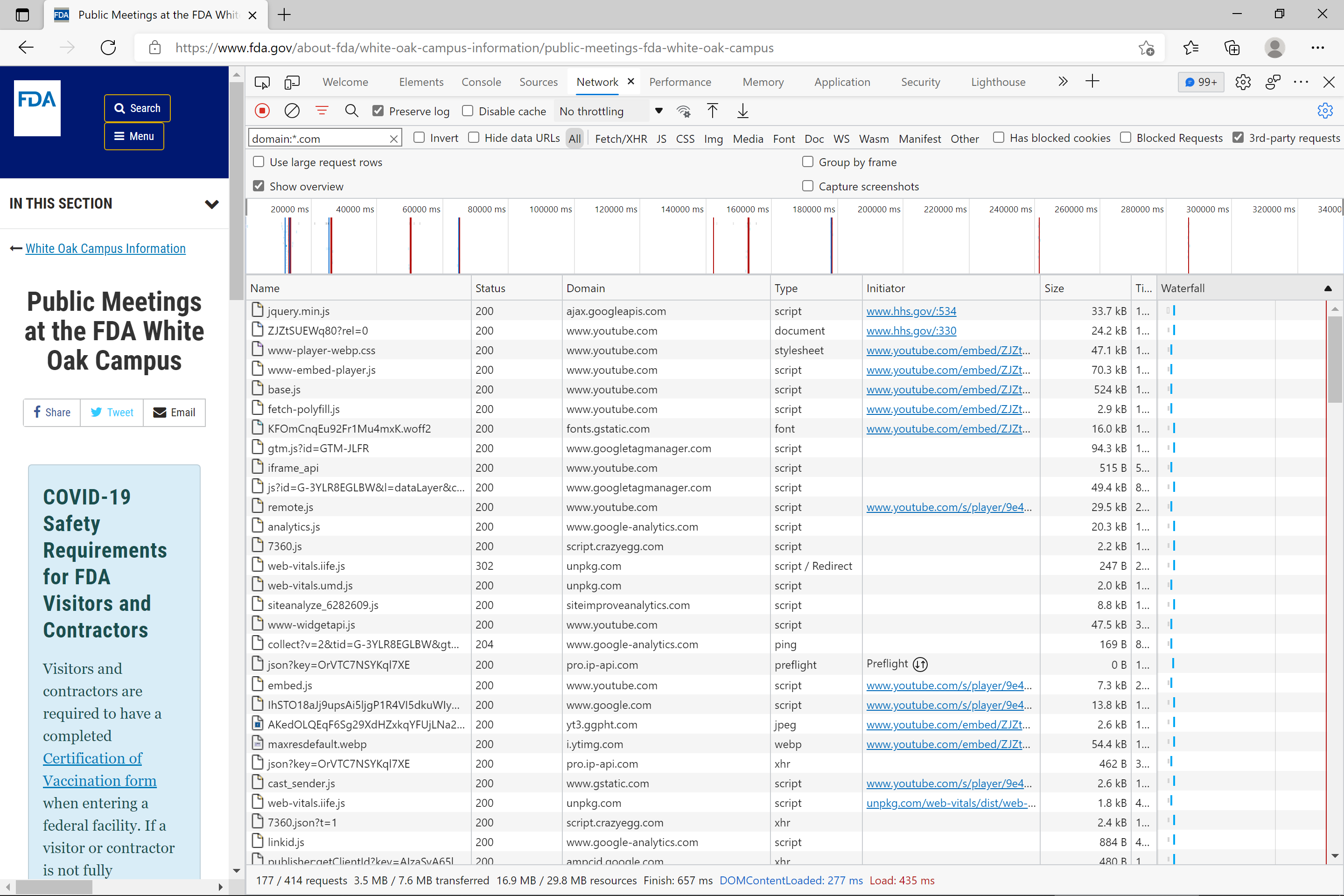 Calls to 3rd party domains after about a dozen clicks on HHS.gov, FDA.gov, and CDC.gov. Domains ending with .com: