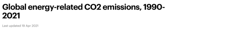 Given that this is COP26 — that is, the 26th of these mostly-annual lollapaloozas since the game got started at the Rio “Earth Summit” back in 1992 — perhaps it is time to look back over these close-to-three-decades at how the whole model for controlling the world’s climate has been working out. For example, you may be wondering, since world leaders started making agreements intended to lower emissions of CO2, how much have those emissions actually gone down? Fortunately, a UN agency, the IEA, keeps a graph of annual “energy-related” CO2 emissions. Here is that graph since 1990: