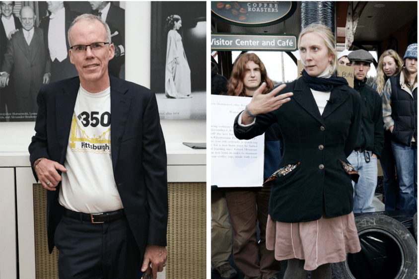 McKibben himself phased out of the CEO role in about 2014, and apparently has little remaining active role at 350.org today. His successor and current CEO is a woman named May Boeve. Here is a picture of the two of them: