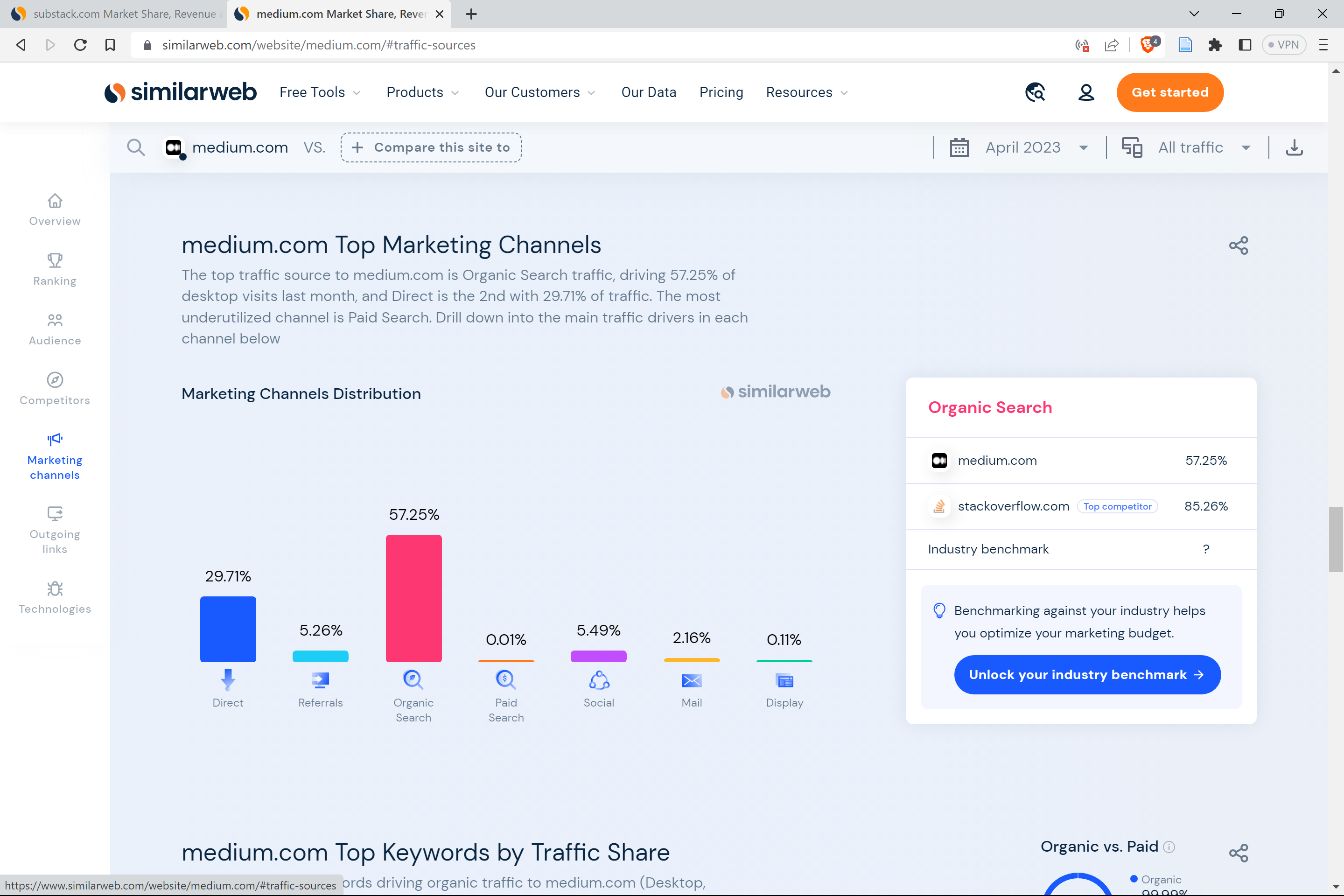 Medium.com traffic sources, 2023-05-28