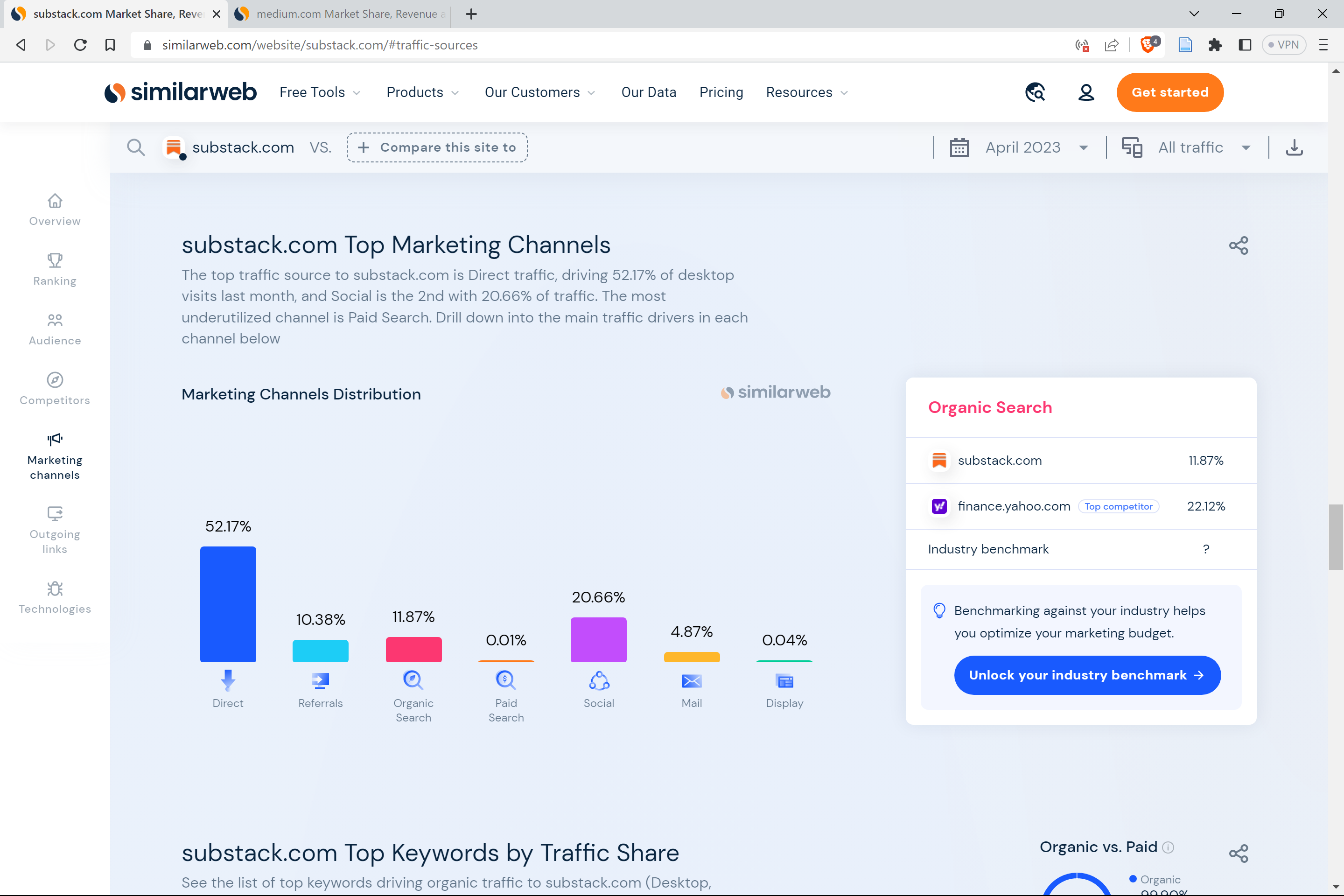Substack.com, traffic sources, 2023-05-28