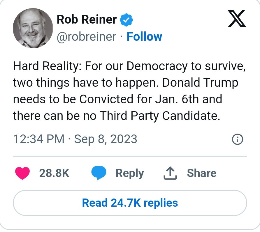Rob Reiner explains that the survival of democracy requires no one is allowed to run against the incumbent.