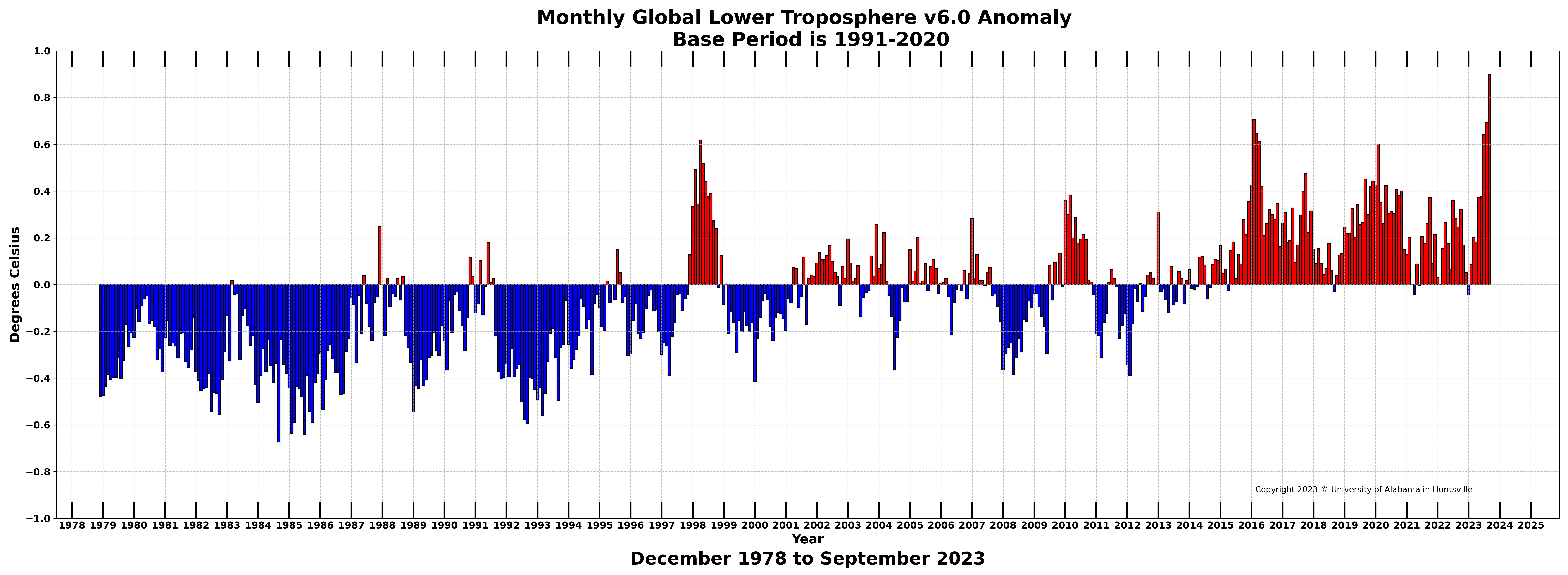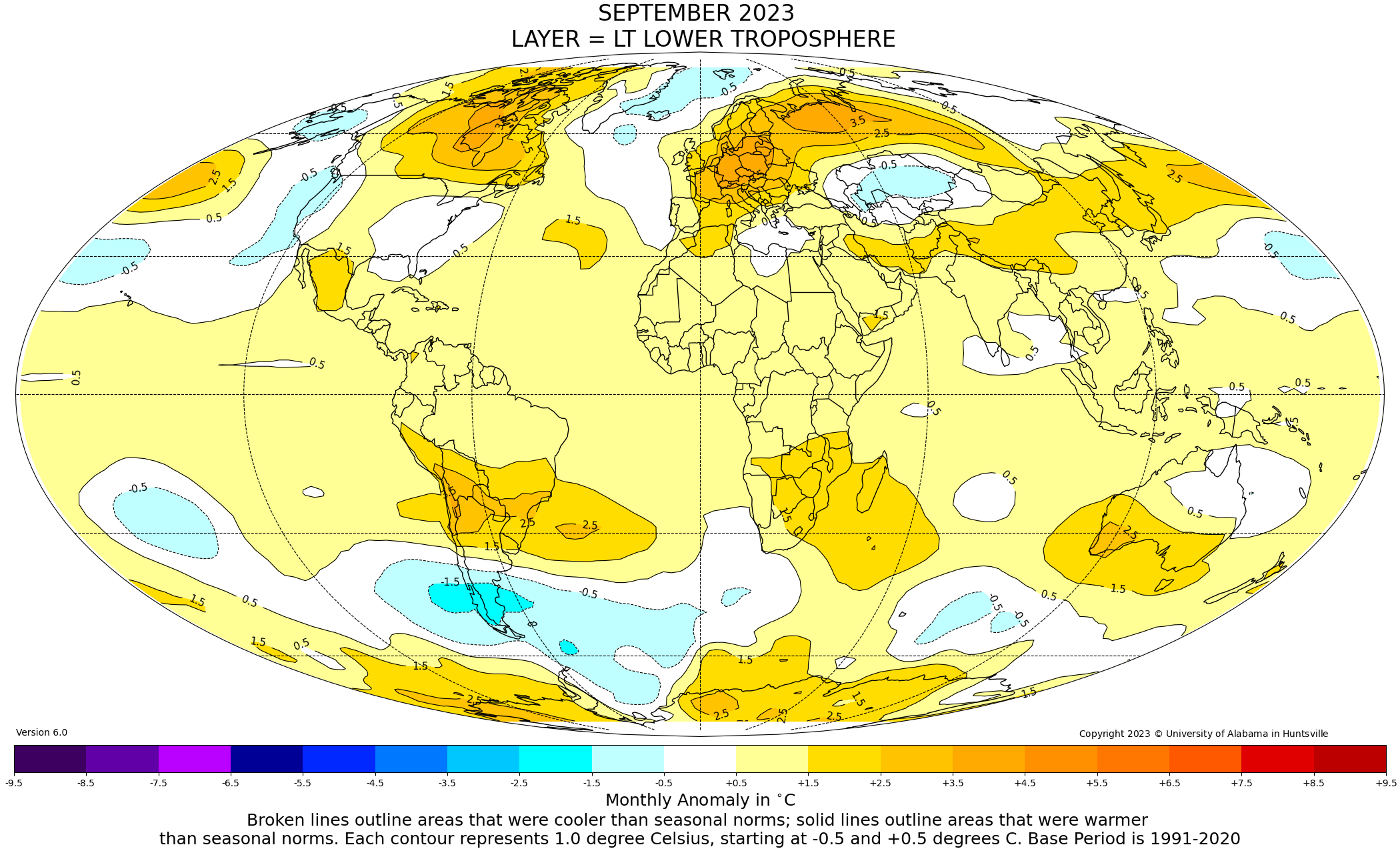 In their Global Temperature Report for September 2023, Christy and Spencer write: