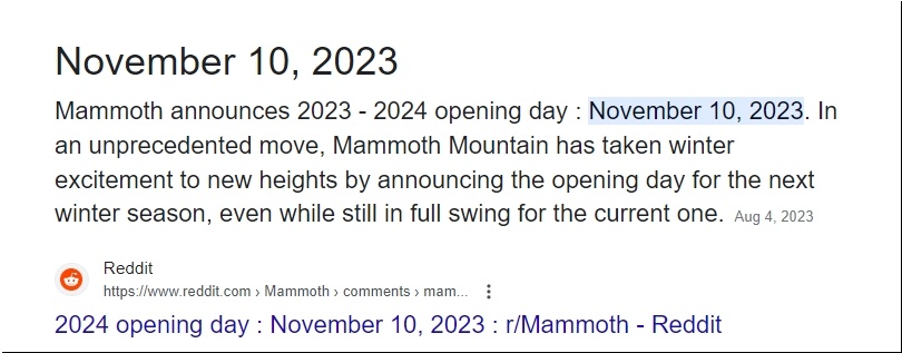 Mammoth Mountain closed in August and reopened today. A nine month long ski season.