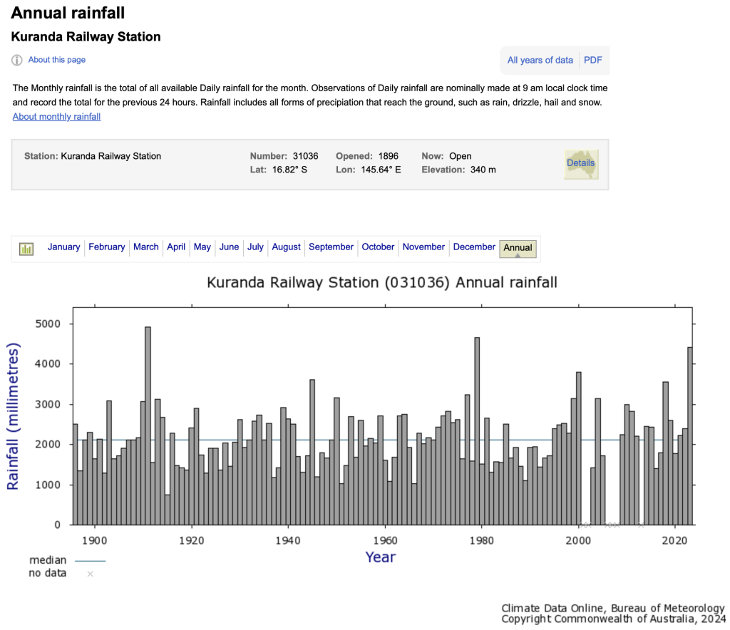 There has been commentary suggesting Cyclone Jasper resulted in unprecedented rainfall in the headwaters of the Barron River causing flooding of Cairns, particularly of the Northern Beaches. There is a long continuous rainfall record for Kuranda indicating that while December 2023, and the rainfall associated with Jasper was extraordinary, there are higher totals for previous year going back to 1911. I have no doubt that the rainfall forecasts for North Queensland following landfall by Cyclone Jasper would have been far superior if ten years ago the Bureau had began to invest in AI technology, had began to develop some capacity in this very different technique.