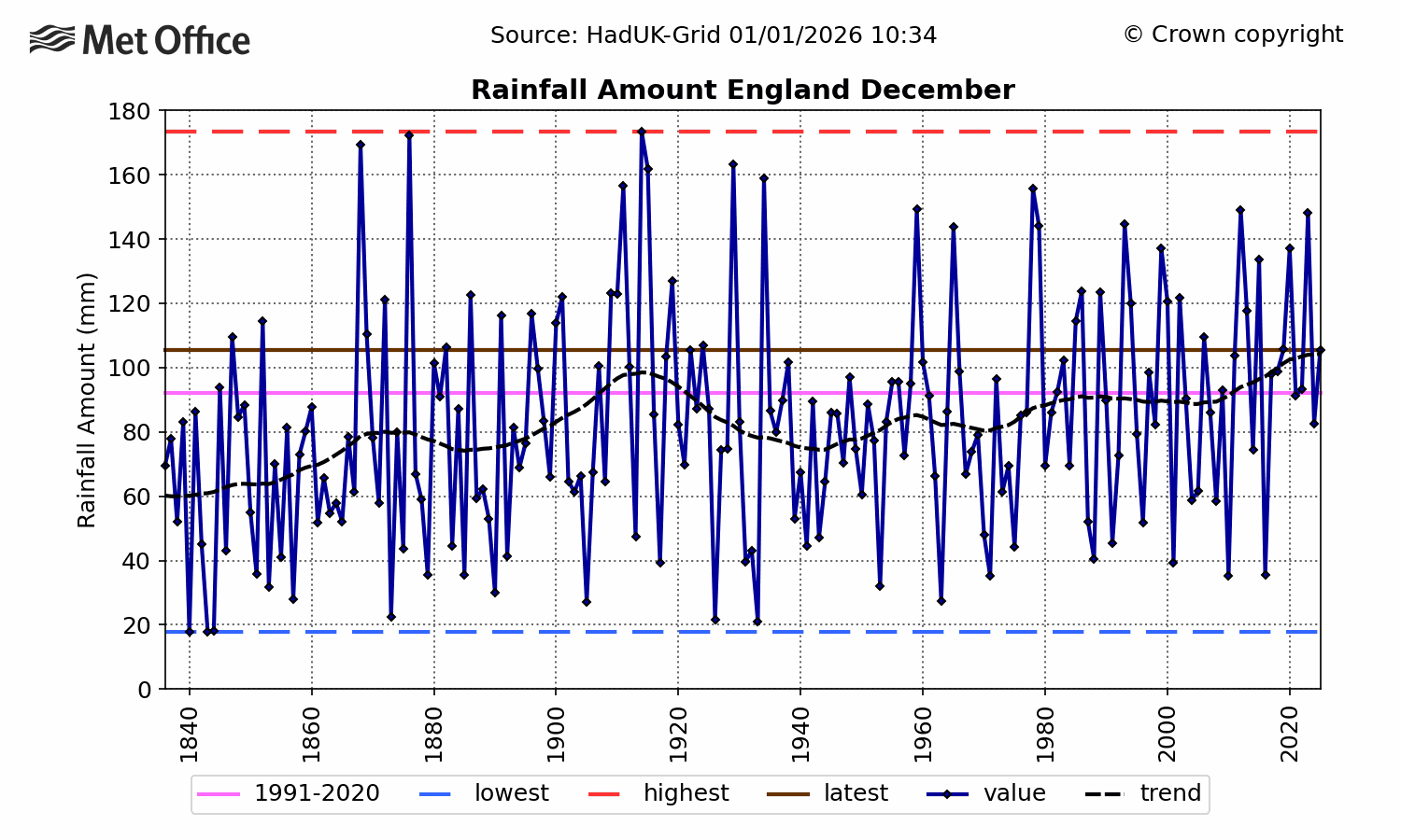 December was certainly wetter than normal, but not unprecedently so. Indeed, it is clear that much more extreme months have occurred in the distant past: