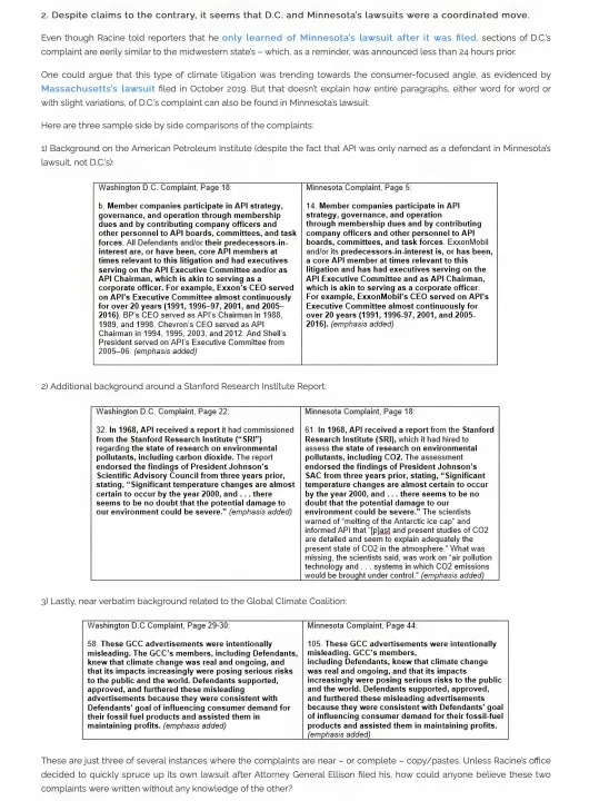 CLW is not alone in noticing an awful lot of familiar verbiage popping up in climate lawsuits filed in different jurisdictions with different laws, different plaintiffs, and even different lawyers.