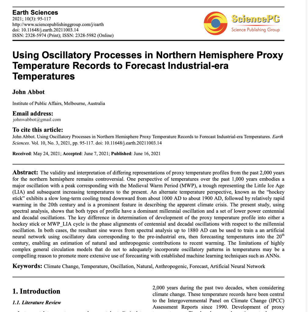 John Abbot and I published a series of papers together through until 2017, after that I lost interest in developing the temperature series that were part of the arrays that John inputted into the neural networks.