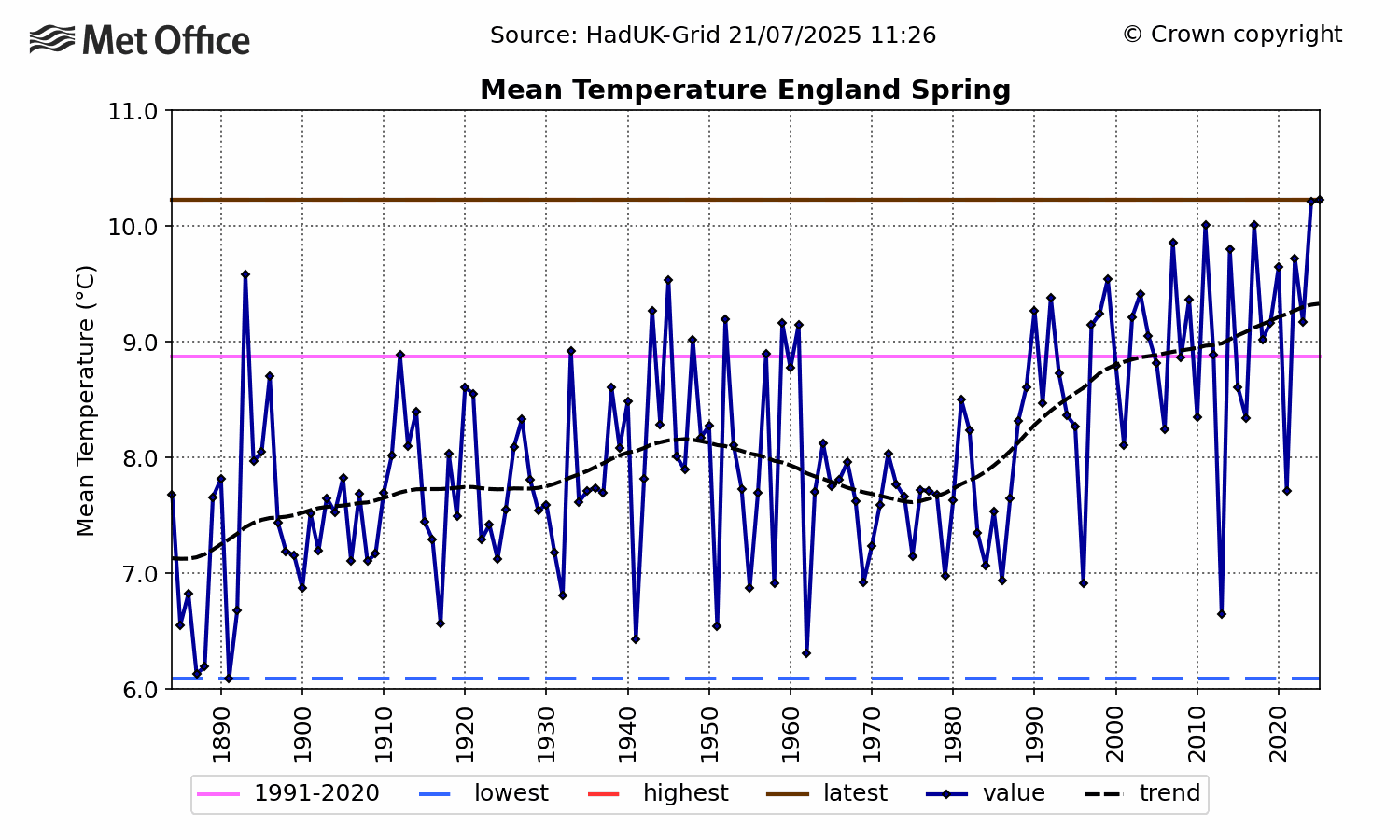 Or to put it another way – Oxford now gets the same temperatures in spring that London had a century ago.